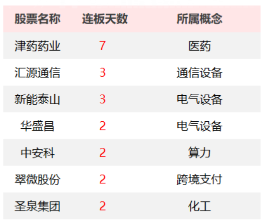 连板股统计丨A股今日共101只个股涨停,医药板块津药药业7连板