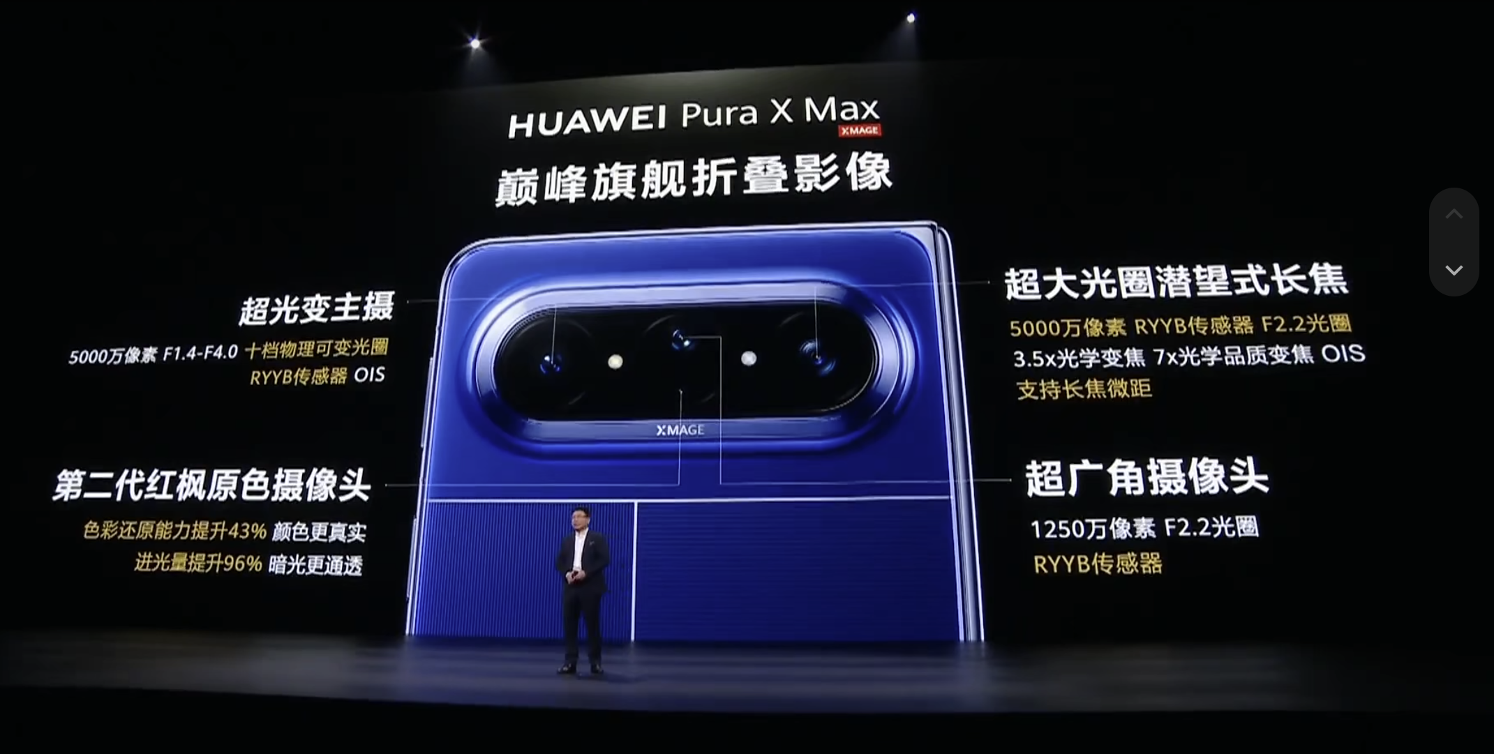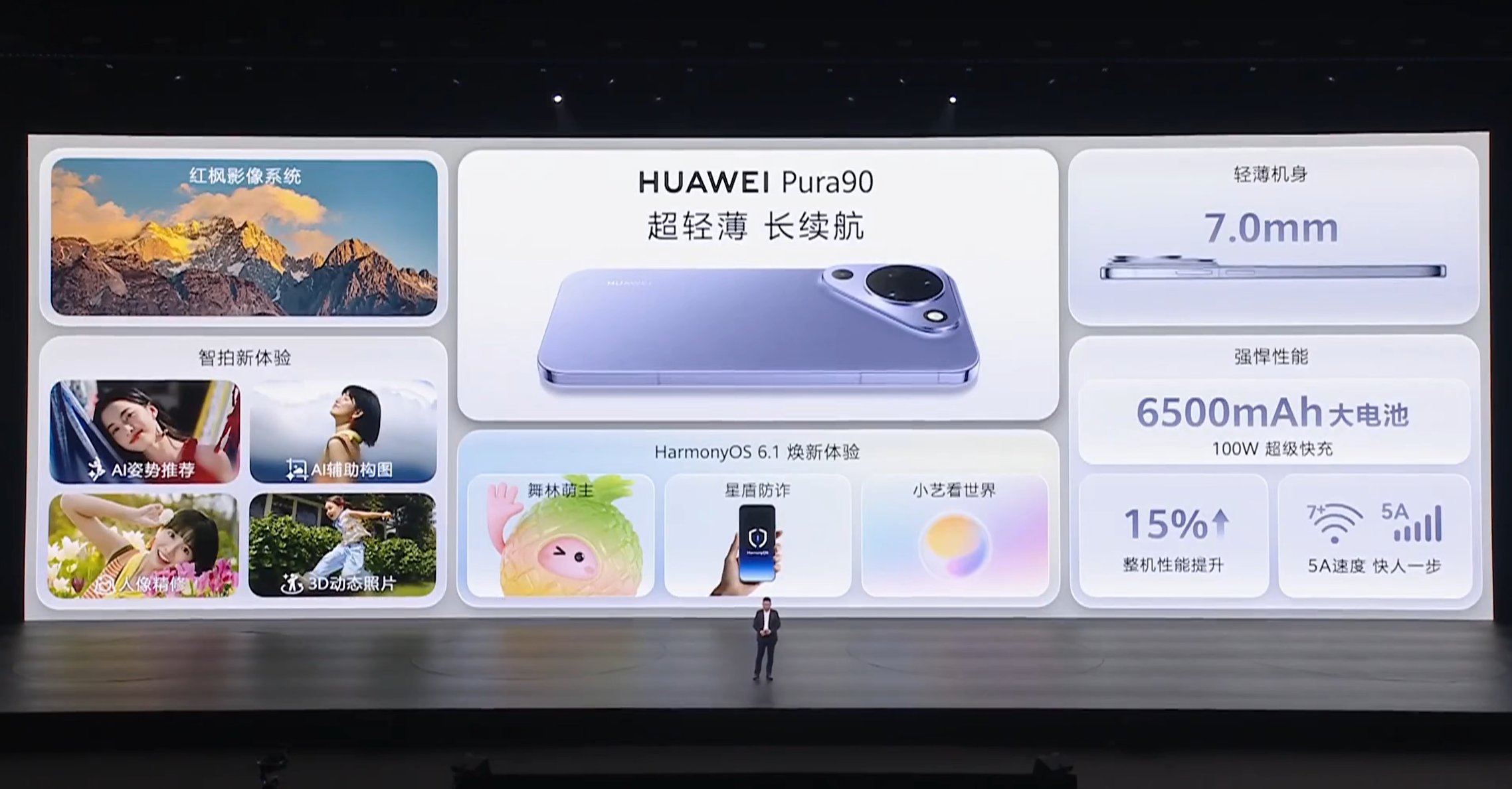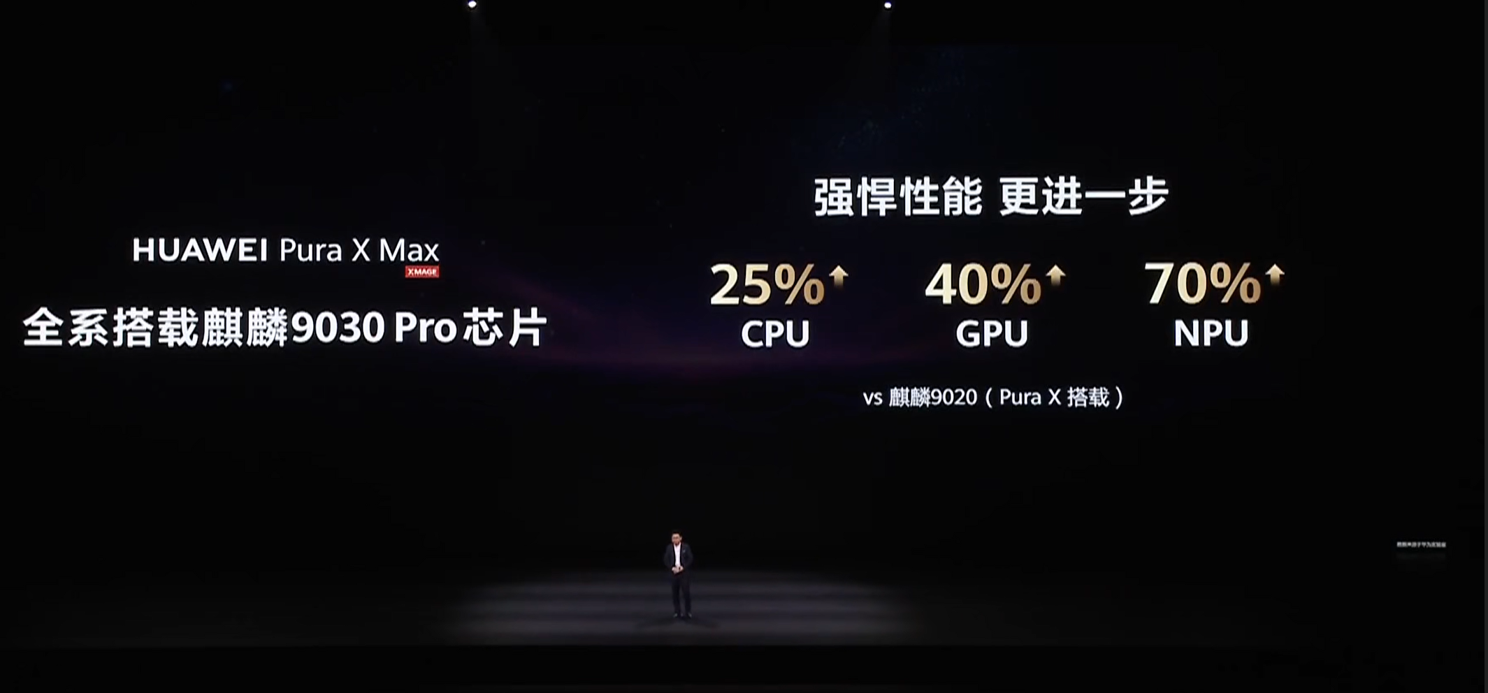 他还提到,华为PuraX Max搭载麒麟9030 Pro处理器,和华为Mate80 Pro Max是同款,也是华为目前性能最好的手机处理器,CPU性能比麒麟9020提升25%,GPU性能提升40%,NPU性能提升70%;在鸿蒙6.1等功能加持下,PuraX Max整机性能可提升30%。